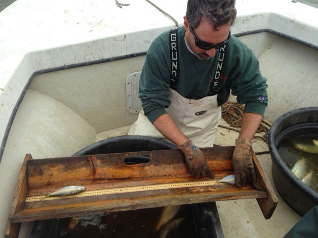 Menhaden are very efficient filter feeders. Water is pushed through specialized gill rakers that are formed into a basket that allows them to capture plankton. Menhaden are an important component of the food chain, providing a link between primary production and higher organisms by consuming plankton and providing forage for species such as striped bass, bluefish, and weakfish, to name just a few.