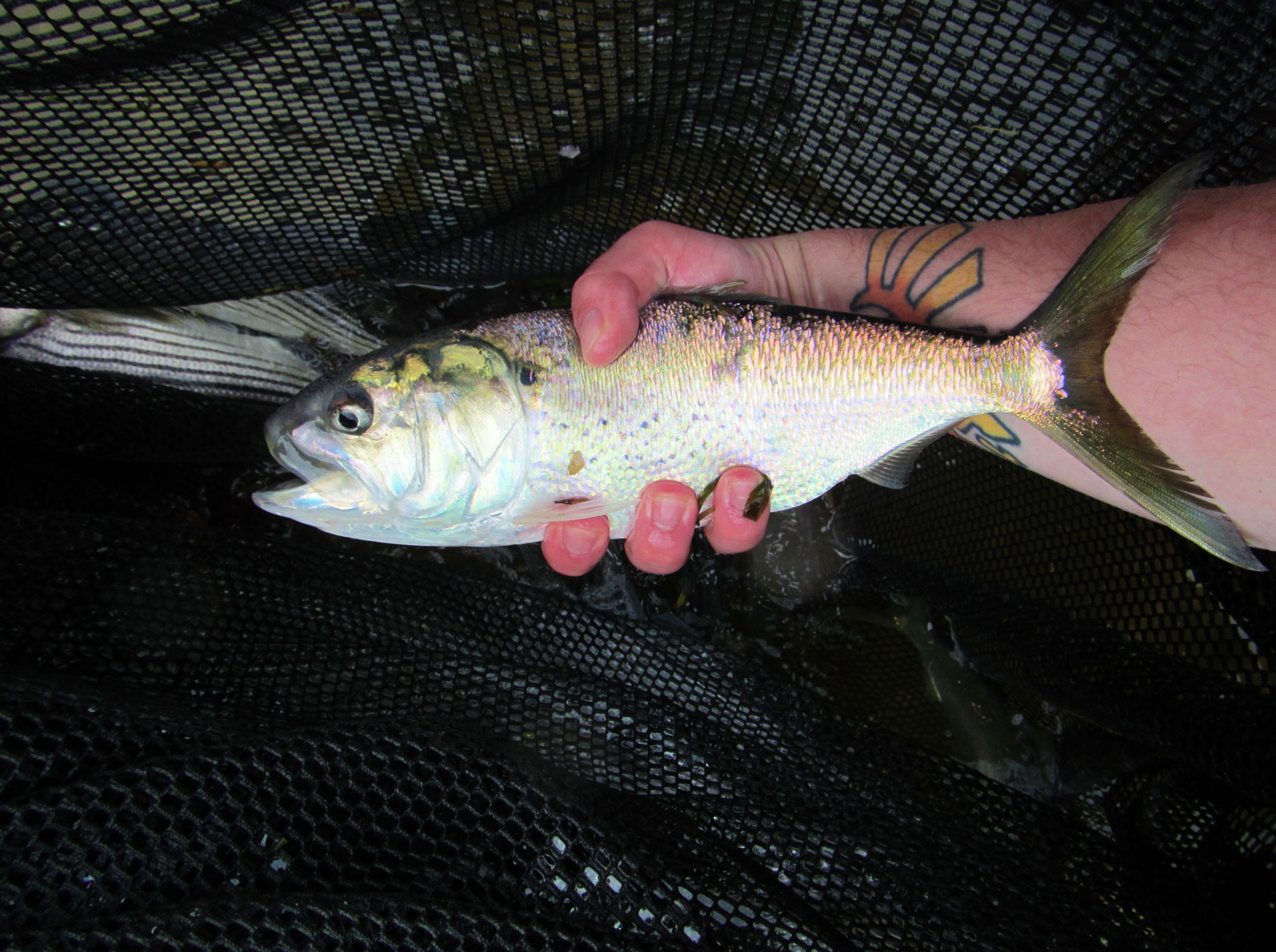 Menhaden are very efficient filter feeders. Water is pushed through specialized gill rakers that are formed into a basket that allows them to capture plankton. Menhaden are an important component of the food chain, providing a link between primary production and higher organisms by consuming plankton and providing forage for species such as striped bass, bluefish, and weakfish, to name just a few.